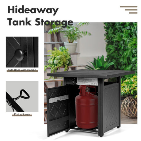 28 Inch Propane 50 000 BTU Patio Square Gas Fireplace with Lava Rock-Black