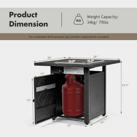 30 Inch Square Propane Gas Fire Table with Waterproof Cover