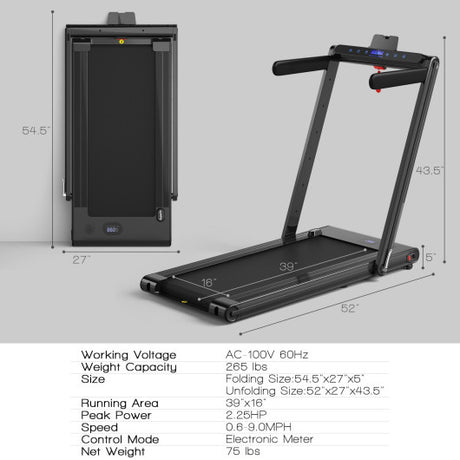 - 53% offCostway 2.25 HP Electric Motorized Folding Running Treadmill Machine with LED Display-Black Sale price $376.42 Regular price $796.00Unit price /Unavailable1 color available In stock