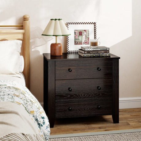 3-Drawer Dresser Wide Chest of Drawers Modern Large Nightstand Closet Storage Organizer-Dark Brown