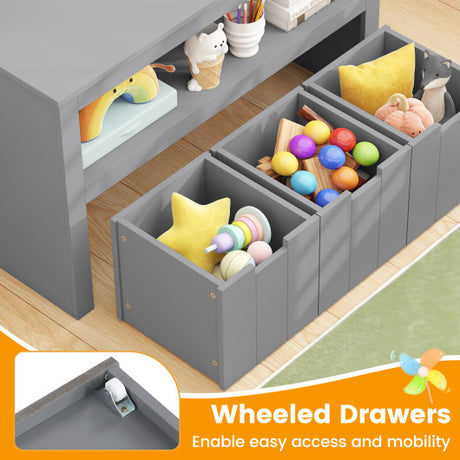 Kid Toy Storage Cabinet Drawer Chest with Wheels and Large Storage Cube Shelf-Gray