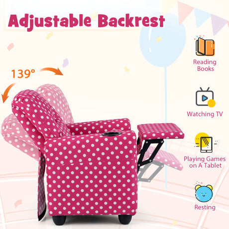 Kids Recliner Chair Push Back Toddler Reclining Armchair with Cup Holder-Pink