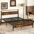 Queen Metal Bed Frame Industrial Platform Bed with Wooden Headboard-Queen Size