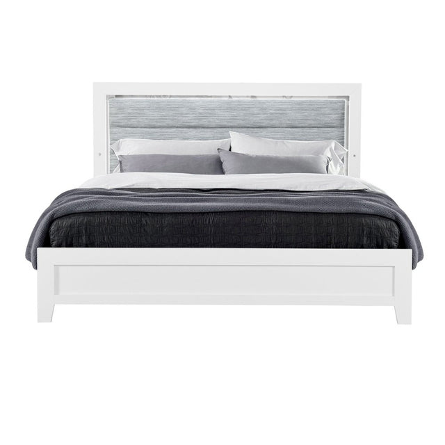 White and Light Gray Ribbed Texture Wood And Upholstery Lighted Full Bed Frame
