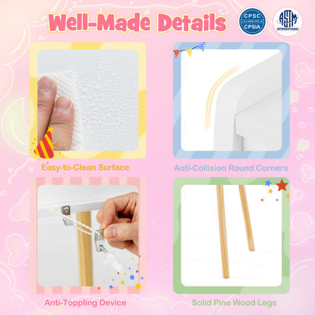 Kids Art Table and Chair Set Toddler Craft Drawing Desk-White