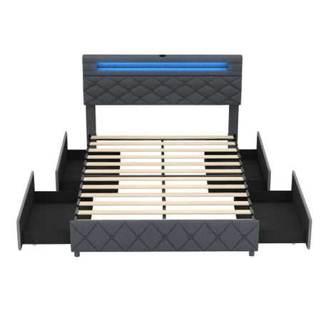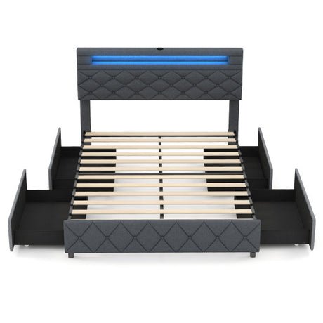 Twin/Full/Queen/King Size Bed Frame with Storage Headboard Industrial Metal Platform Bed-Queen Size