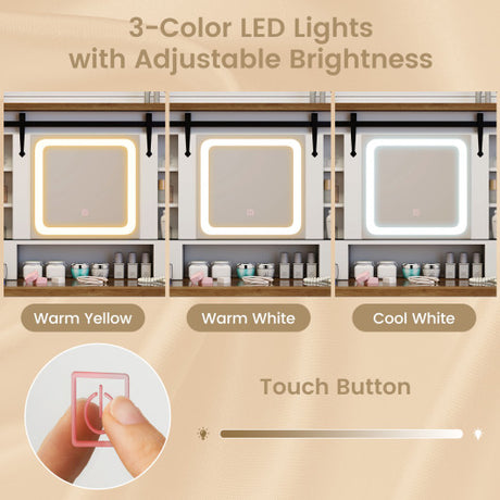 Makeup Vanity Desk with Mirror and 3-Color Dimmable LED Lights-White