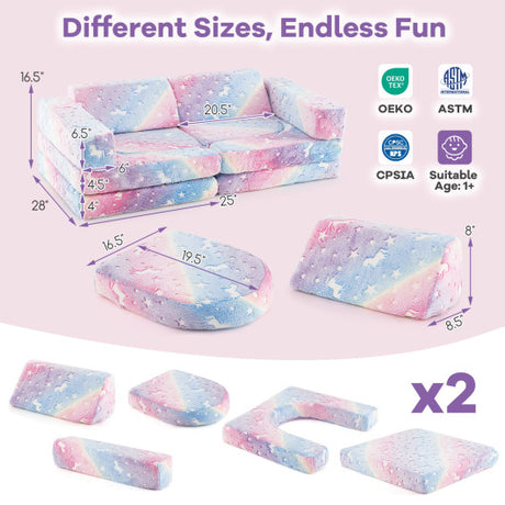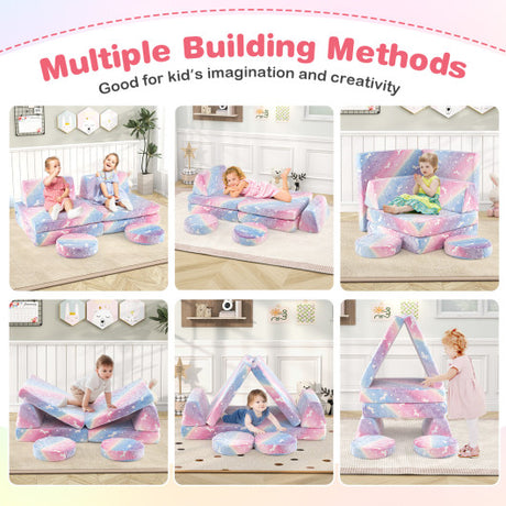 10 Pieces Modular Kids Play Couch Sectional Sofa Glow in the Dark-Multicolor