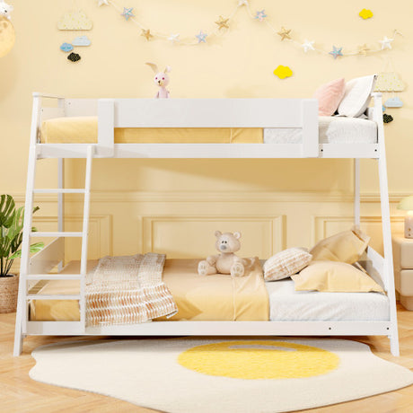 Twin Over Full Low Bunk Bed with Reversible Ladder-White
