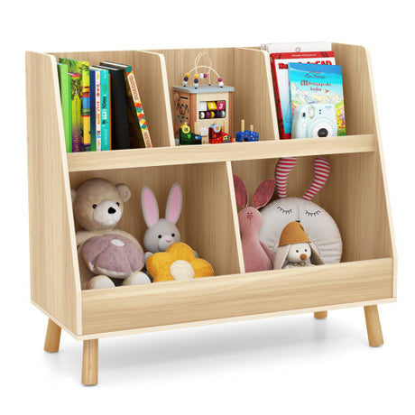 5-Cube Kids Bookshelf and Toy Organizer with Anti-Tipping Kits-Oak