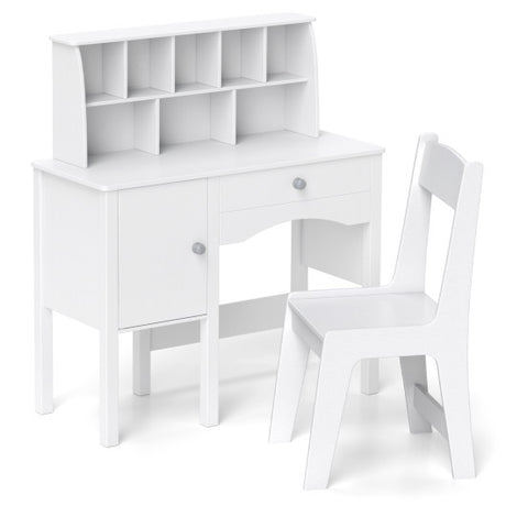 Kids Study Desk and Chair Set with Chair Hutch and Storage Cabinet for 3+ Years Old-White