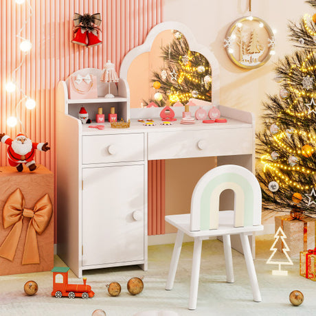 Kids Vanity Table and Chair Set with Cloud-shaped Mirror and Open Shelf-White