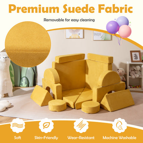14 PCS Modular Kids Play Couch for Playroom and Bedroom-Yellow