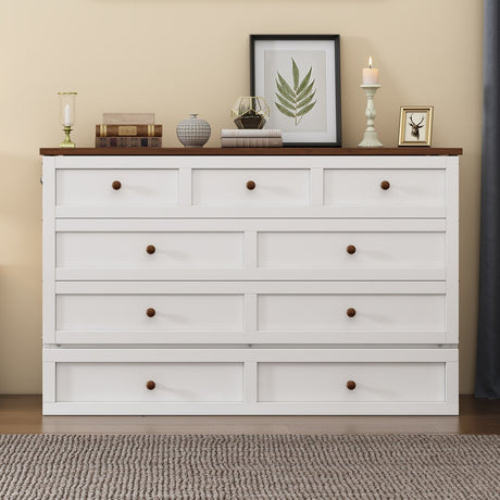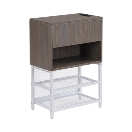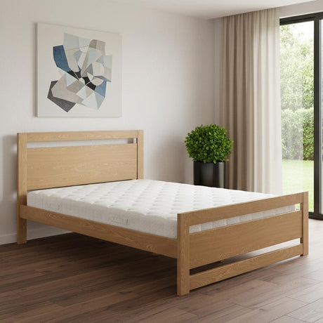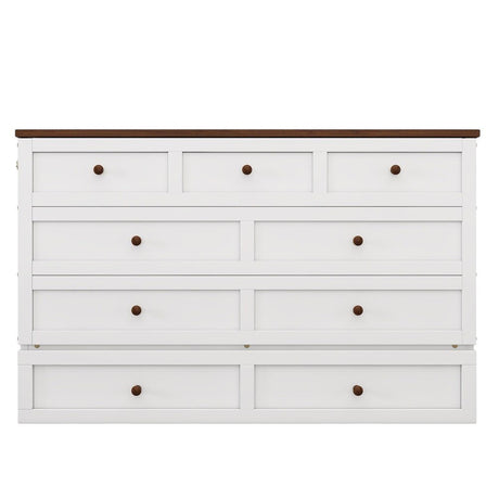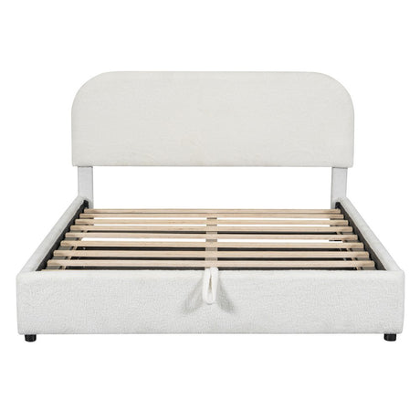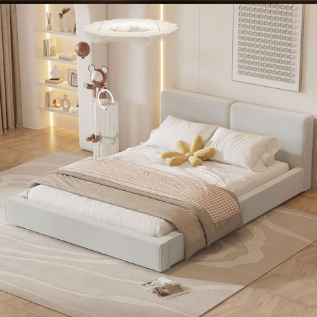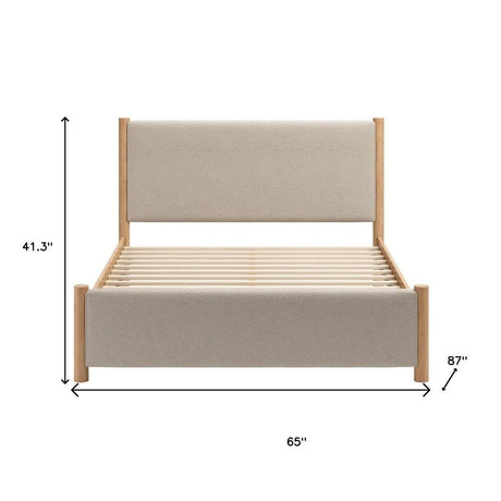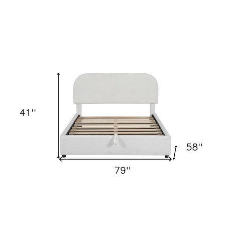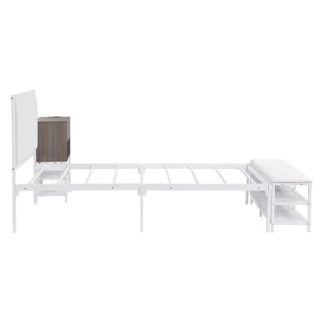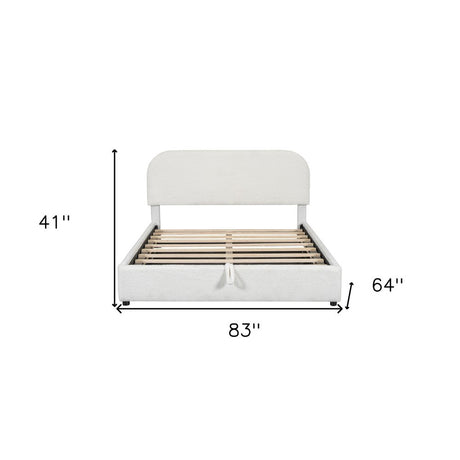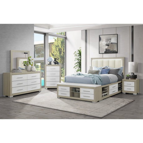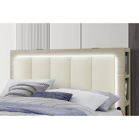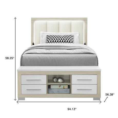 Natural White and Beige Wood And Upholstery Lighted Upholstered Full Bed Frame With USB And Drawers
