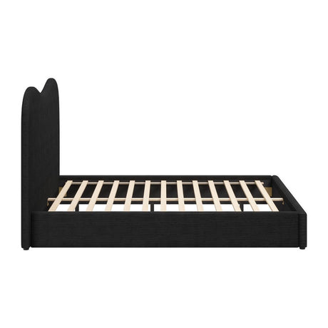 Black Ribbed Texture Velvet Upholstered Queen Bed Frame