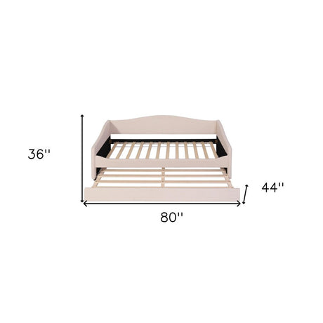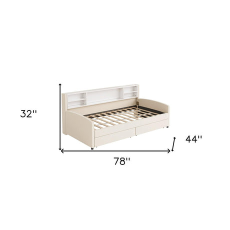 Beige Tufted Boucle Twin Day Bed With LED Lighting And Trundle And USB