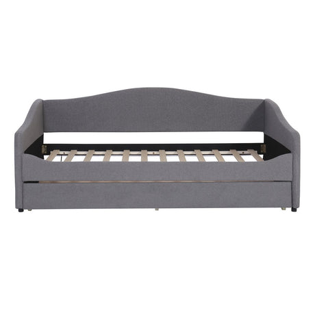 Gray Tufted Boucle Twin Day Bed With LED Lighting And Trundle And USB
