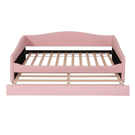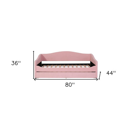 Pink Tufted Boucle Twin Day Bed With LED Lighting And Trundle And USB