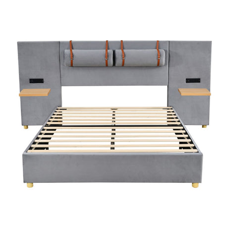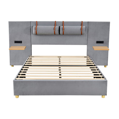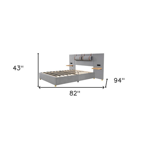 Gray Tufted Upholstered Queen Bed Frame With USB