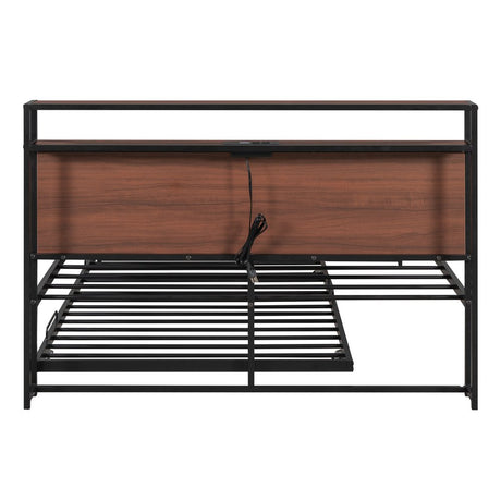 Black and Gray Wood And Upholstery Lighted Upholstered Full Bed Frame With USB And Drawers