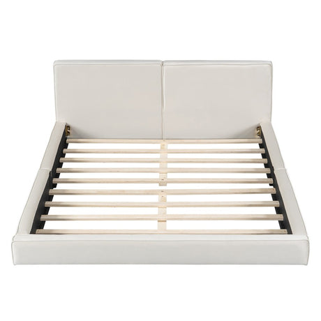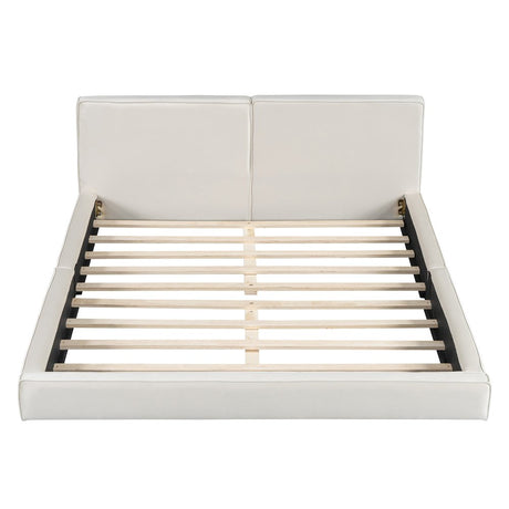 Gray And Cream Faux Leather Upholstered King Bed Frame