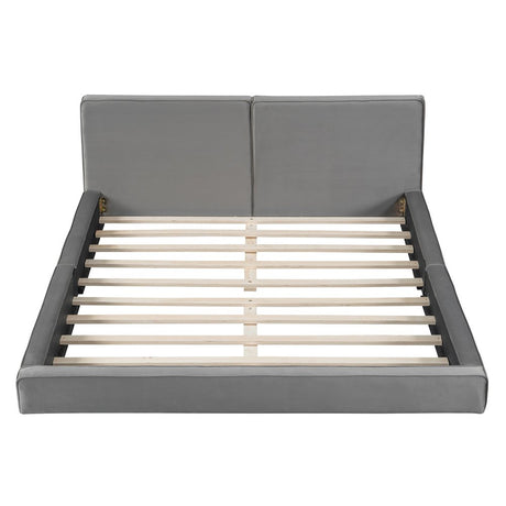 Gray Tufted Velvet Upholstered Queen Bed Frame