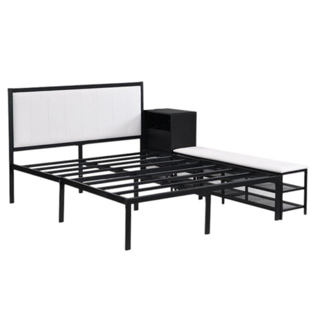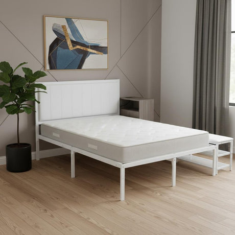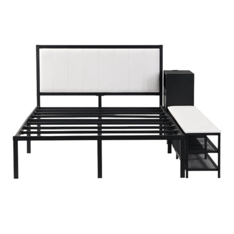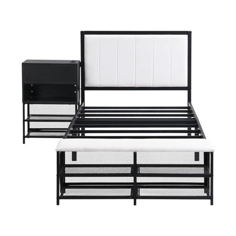 White Metal And Tufted Upholstery Upholstered Full Bed Frame