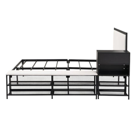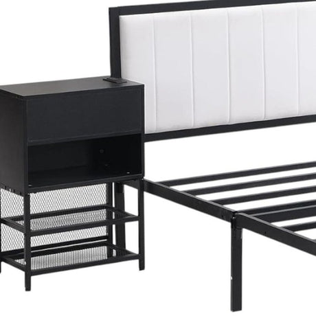 Black and White Metal And Tufted Upholstery Upholstered Full Bed Frame