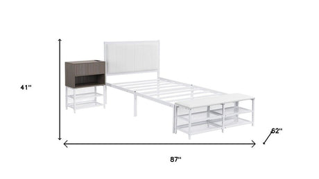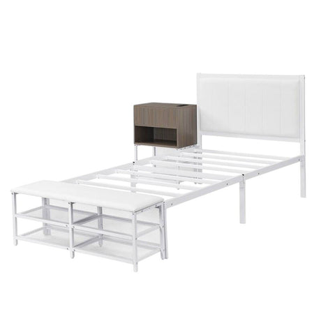 White Metal And Tufted Upholstery Upholstered Twin Bed Frame
