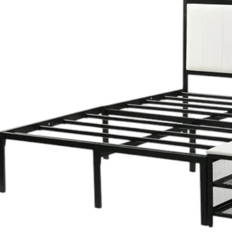 Black and White Metal And Tufted Upholstery Upholstered Twin Bed Frame