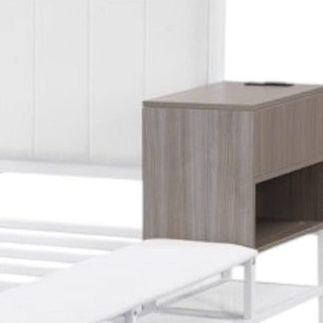 Gray and White Wood And Upholstery Lighted Queen Bed Frame