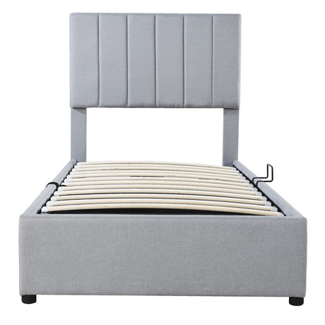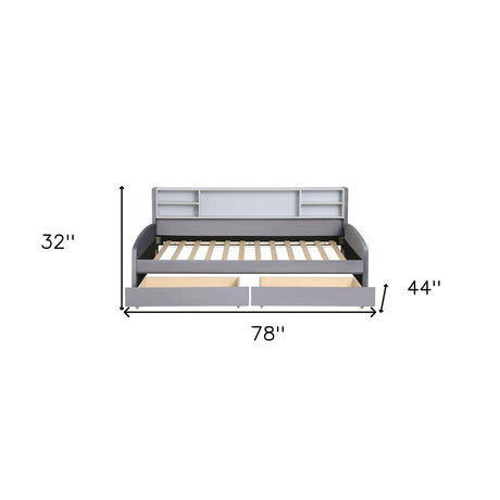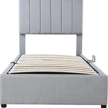 Gray Tufted Upholstered Twin Bed Frame With Trundle