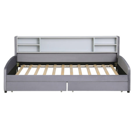 Gray Tufted Velvet Upholstered Twin Bed Frame With Drawers