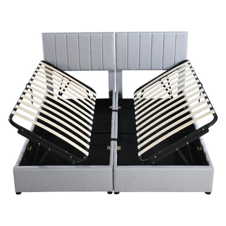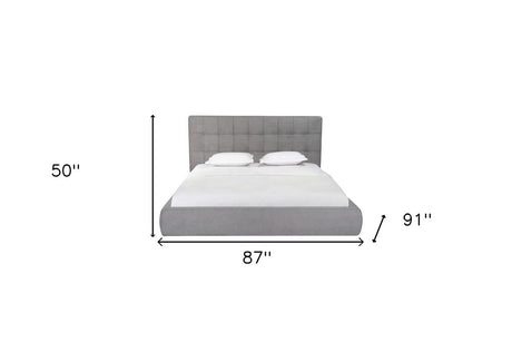 Gray Tufted Linen Blend Upholstered King Bed Frame