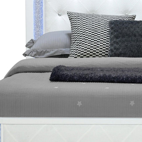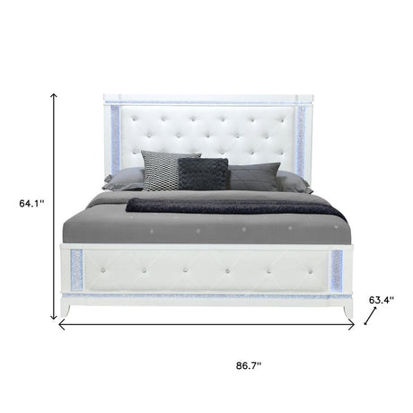 White Faux Crystal Bling Wood And Tufted Cotton Lighted Queen Bed Frame