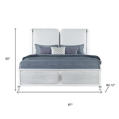 Gray and White Wood And Upholstery Lighted King Bed Frame