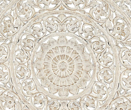 White Carved Floral Distressed Solid Wood Queen Bed Frame