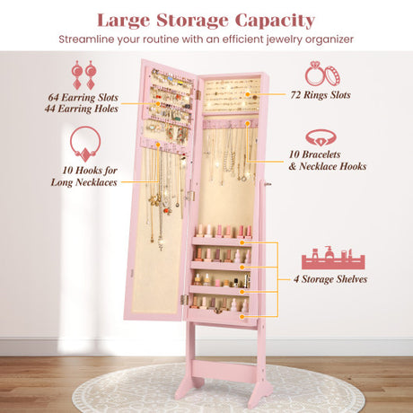 Mirrored Standing Jewelry Cabinet Storage Box-Pink