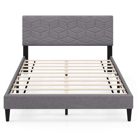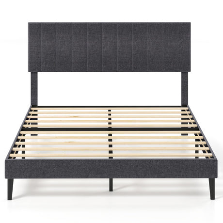Twin/Full/Queen Size Bed Frame Modern Platform Bed with Linen Fabric Upholstered Headboard-Full