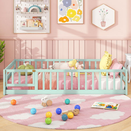 Twin Size Montessori Floor Bed Frame with Full Length Safety Guardrails-Green