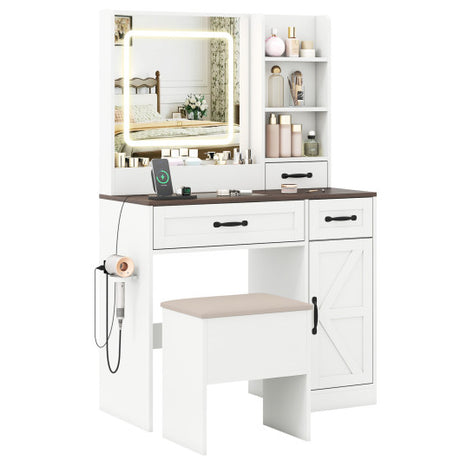 Vanity Desk with Mirror and Lights Farmhouse Makeup Dressing Table-White