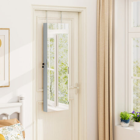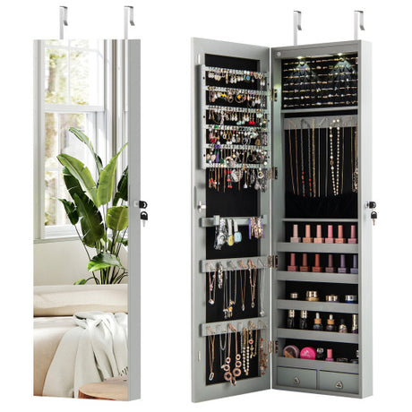 Wall and Door Mounted Mirrored Jewelry Cabinet with Lights-Gray