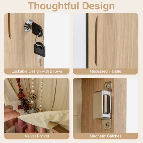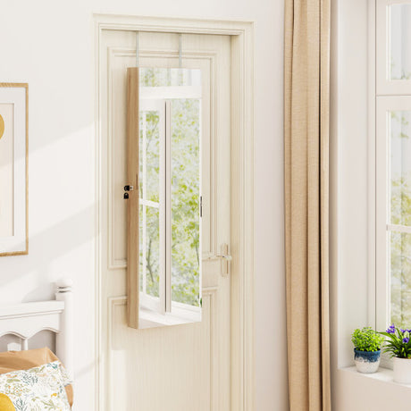 Wall and Door Mounted Mirrored Jewelry Cabinet with Lights-Natural