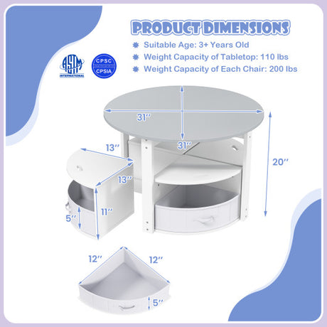 5 Piece Toddler Round Nesting Table with 4 Storage Stools for Activity-Grey