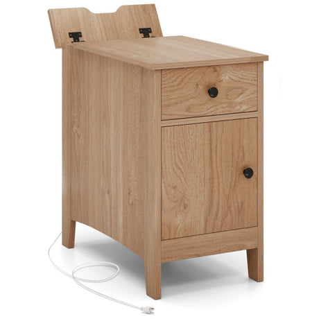 Flip Top End Table with Charging Station USB Ports Outlets and Drawer-Natural