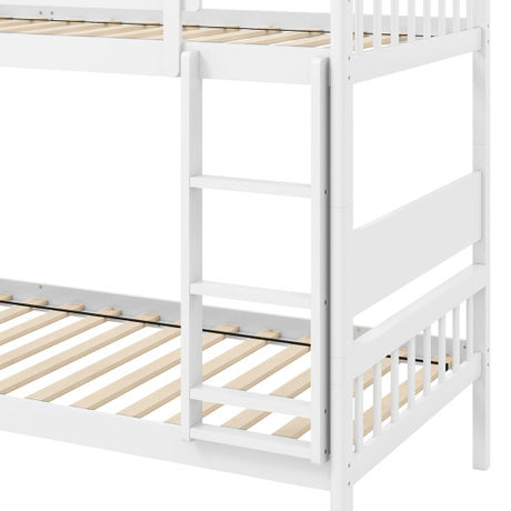 Twin Over Twin Bunk Bed with Ladder and Full-length Guardrails-White