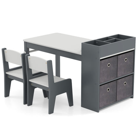 3 Pieces Kids Wooden Table and Chair Set-Gray