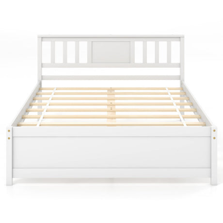 Wooden Platform Bed with Headboard and Wood Slat Support White-Full Size
