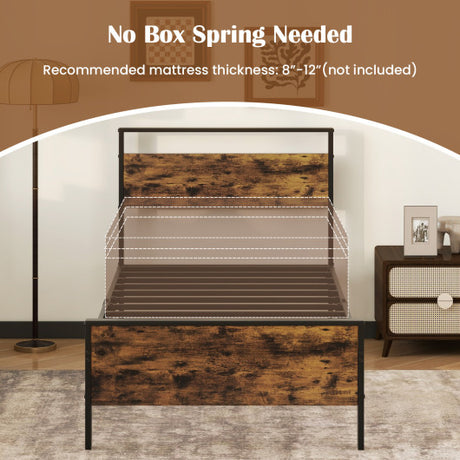 Metal Bed Frame with Headboard and Footboard-Twin Size