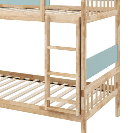 Twin Over Twin Bunk Bed with Ladder and Full-length Guardrails-Natural